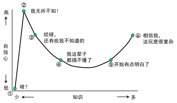 后来我看到达克效应(如图),用来解释这位读者的情形也很贴切。