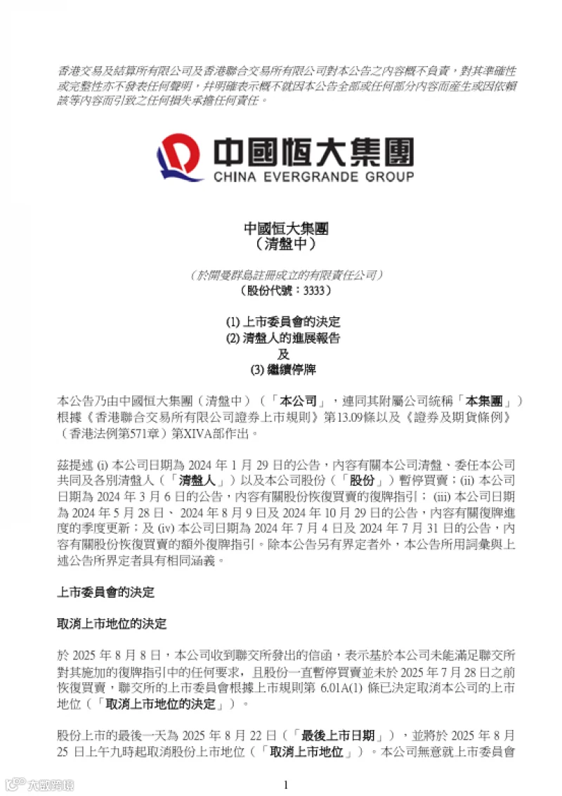 最近,负债2.44万亿的恒大迎来了退市的公告。