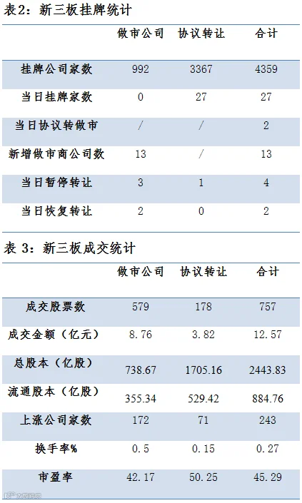 2家协议转做市,13家公司新增做市商