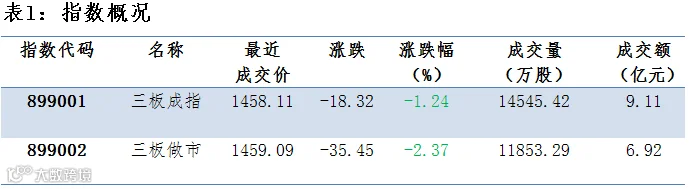 三板成交额回落 做市指数异动