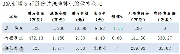 表12:昨日12家公司新增发行股份并挂牌转让: