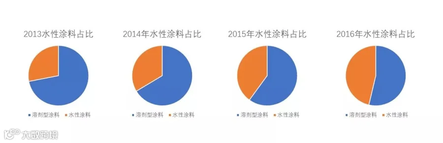 科科最近看到了一篇关于水性涂料市场份额的文章,文章指出,2013-2016年水性涂料的市场份额保持增速,随着环保政策的出台,预计到2020年水性涂料在涂料市场中的占比将达到54%。
