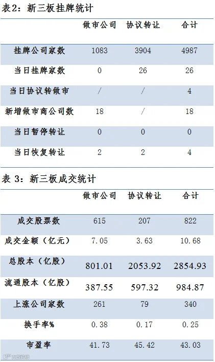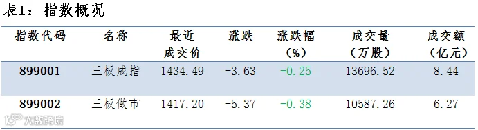 三板成交额回落 做市指数下跌