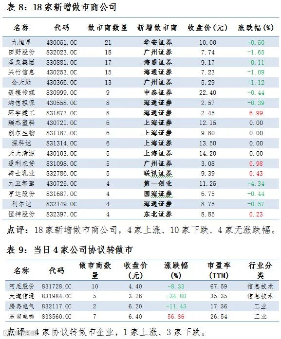 4家协议转做市,18家公司新增做市商