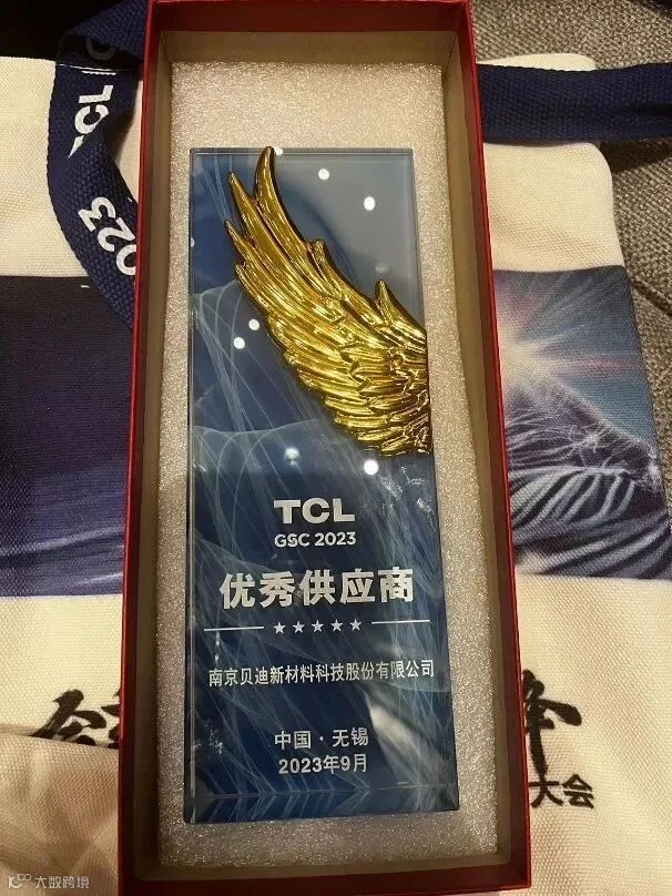 在这次大会上,贝迪新材料被授予优秀供应商称号,这是对贝迪新材料在量子点膜领域的技术实力和市场影响力的高度认可。