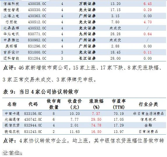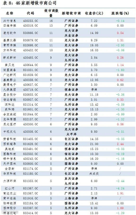 4家协议转做市,46家公司新增做市商