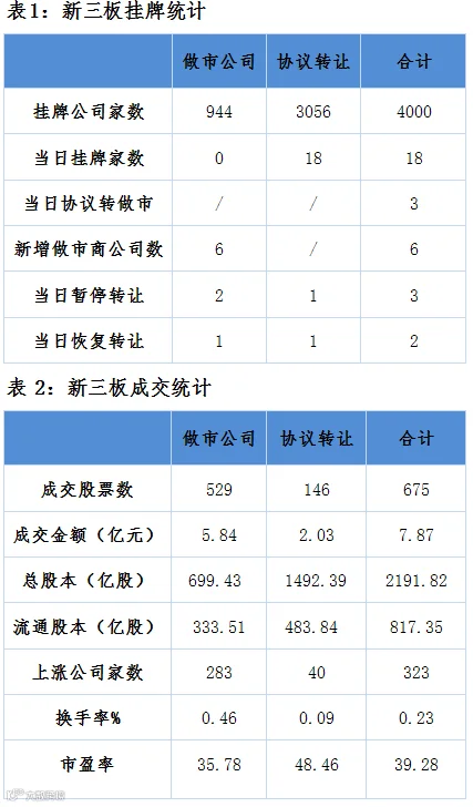 上周五三板共计675只股票成交,总成交额回暖至7.87亿,其中做市成交5.84亿,协议成交2.03亿元。