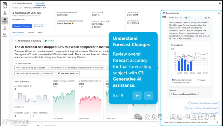 这种新范式的核心是数据、AI智能与执行的闭环。数据提供了对现状的理解,AI生成预测和建议,执行将这些建议转化为行动,而这些行动又产生新的数据,形成一个持续改进的循环。C3.ai的平台方法相比点解决方案的优势在于它能够支持这个完整的闭环,确保各个环节之间的无缝衔接。