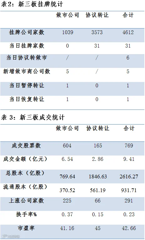 昨日三板共计769只股票成交,总成交额9.41亿元。其中做市成交6.54亿;协议成交2.86亿元。
