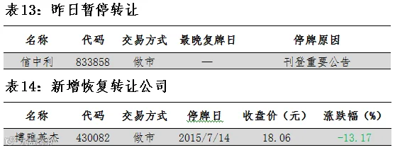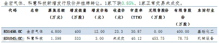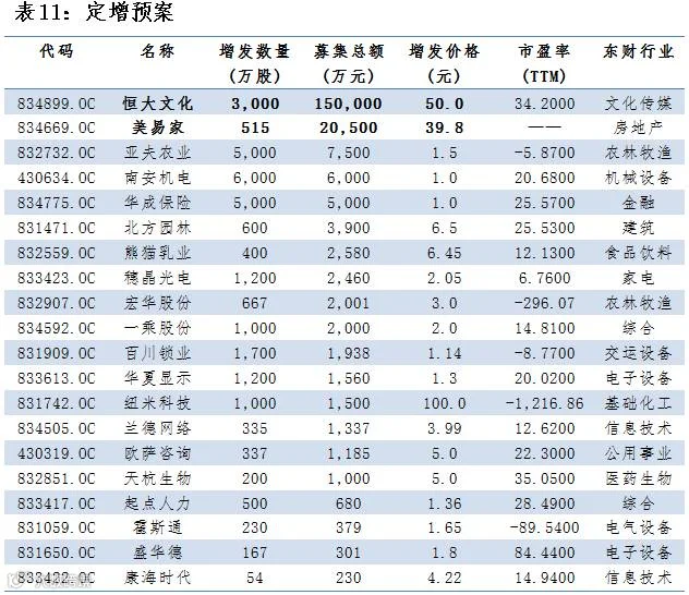 表12:昨日9家公司新增发行股份并挂牌转让: