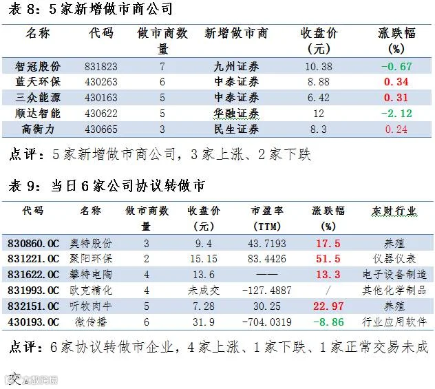 6家协议转做市,5家公司新增做市商