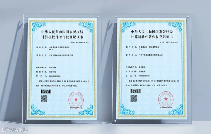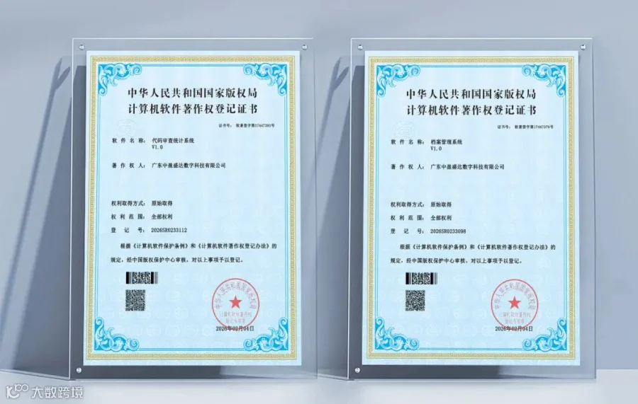 近日,数科公司获得四项国家级计算机软件著作权登记证书,经国家版权局审核批准,此次获批的著作权分别为《代码审查统计系统V1.0》《档案管理系统V1.0》《中盈盛达数科智能发票系统V1.0》《中盈盛达统一事后监管系统V1.0》。
