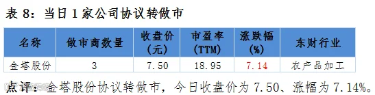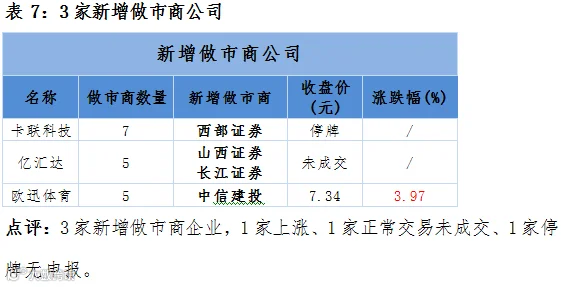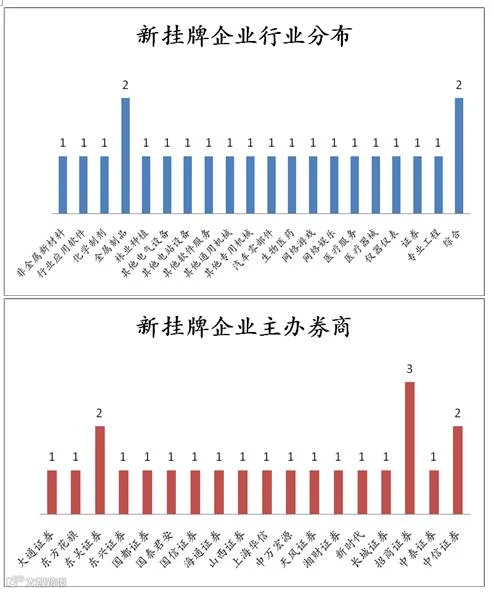 点评:当日新增22家公司,其中坤鼎集团为新股首发做市公司。新挂牌企业中,综合与金属制品行业占比较大;主办券商方面,招商证券占比较大。