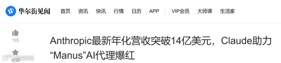 2、Anthropic最新年化营收突破14亿美元,Claude助力“Manus”AI代理爆红,华尔街见闻