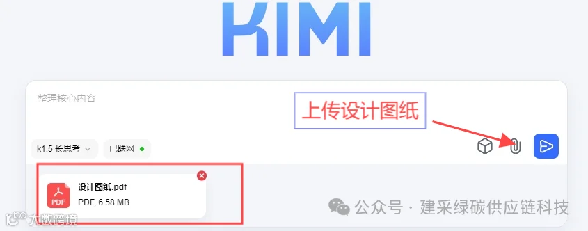 在开始编制作业指导书之前,你需要准备好相关的设计图纸及相关资料,通过文件上传按钮将图纸上传给kimi。