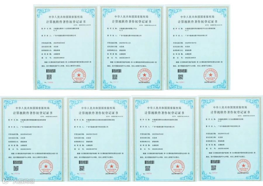 近日,数科公司荣获7项由中华人民共和国国家版权局颁发的计算机软件著作权登记证书,标志着数科公司在系统开发、智能风控等方面取得了阶段性成果。
