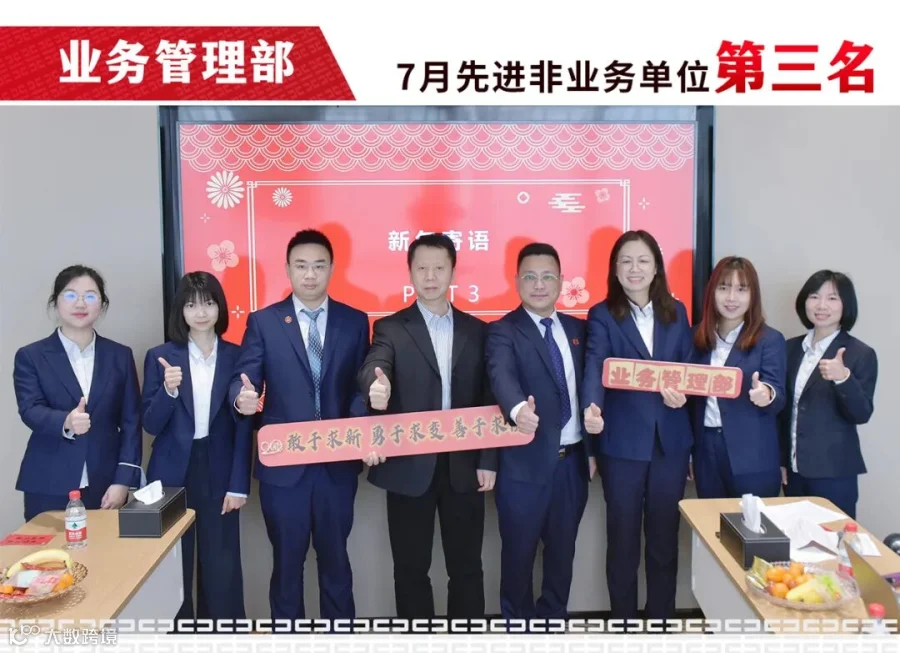 业务管理部获7月争先创优先进非业务单位第三名。7月,部门全员积极协助公司主办的论坛活动筹备工作,妥善安排多家银行领导的前期联系邀请,中期接待服务与后期的反馈跟进,获得了合作方的认可。同时,部门还在每周五特别组织学习公司制度的专题晨会,确保成员透彻理解制度内容,推动各项工作的高质量完成。