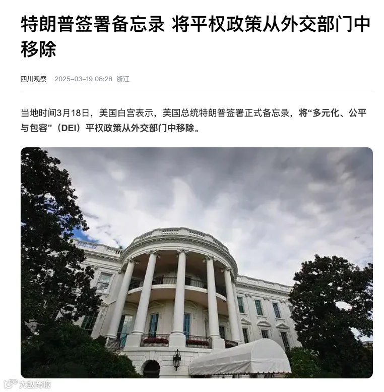 然而就在这段时间,特朗普大笔一挥,把整个DEI政策从多个政府部门里完全移除。