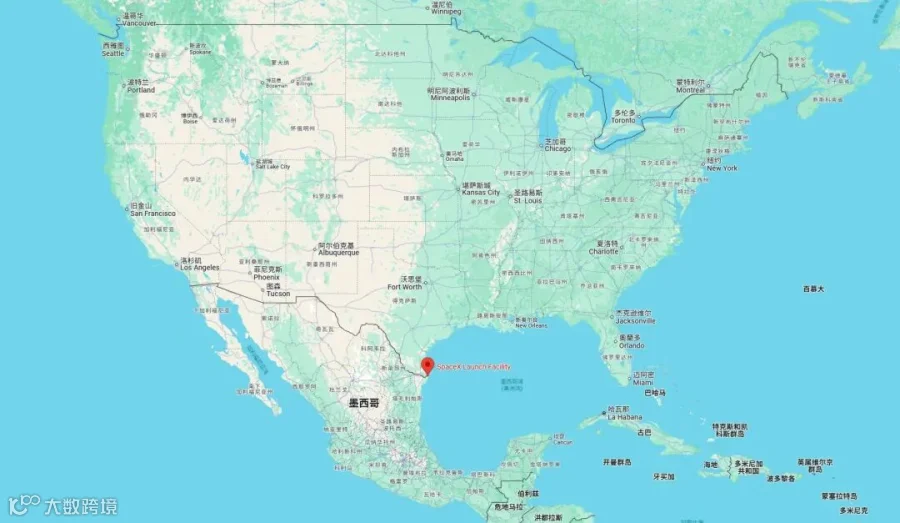 我们来看这张地图,红标的位置,就是SpaceX的博卡奇卡发射基地。马斯克星舰计划的卫星,基本都从这里发射升空。