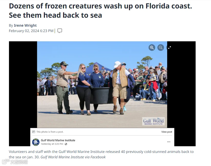 而低温寒潮,对海龟的生存是一大威胁。没有合适的温度,海龟蛋无法孵化,甚至成年海龟都可能被冻死。