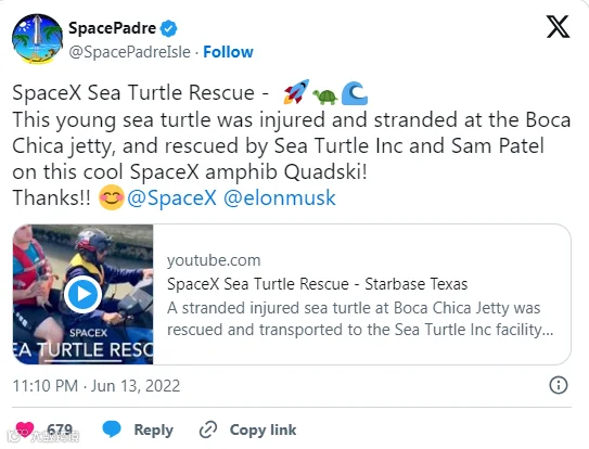 听到这儿,你可能一头雾水,这都哪跟哪?往天上打卫星,和保护海龟有什么关系?这到底是星舰爱好者,还是海龟爱好者?