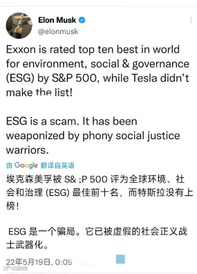 马斯克和这些社会组织,真的是一生之敌,当时他曾发推特,痛骂ESG就是个大骗局,已经“被虚假的社会正义战士武器化”。