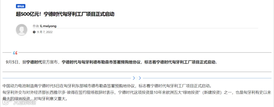 无论是宁德时代,还是匈牙利商界,都对这项投资寄予厚望。
