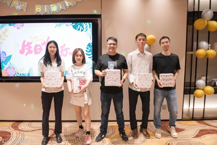 生日会上,寿星们在舒适轻松的氛围中,一起切蛋糕、许愿、品尝美食,还积极参与到歌曲竞猜竞答的游戏。活动不仅为寿星们精心准备了全民猜歌、全能接唱、疯狂猜歌和接唱擂台四个紧张又好玩的游戏环节,还为寿星们准备了包装精美的丰厚奖品:游戏中获奖的寿星可按照一、二、三等奖的获奖名次用盲盒的方式随机抽取一份奖品,给寿星带来别具一格的惊喜。大家在游戏中分享快乐,感受到公司这个大家庭的关怀和温暖。每个人的脸上都洋溢着幸福的笑容。