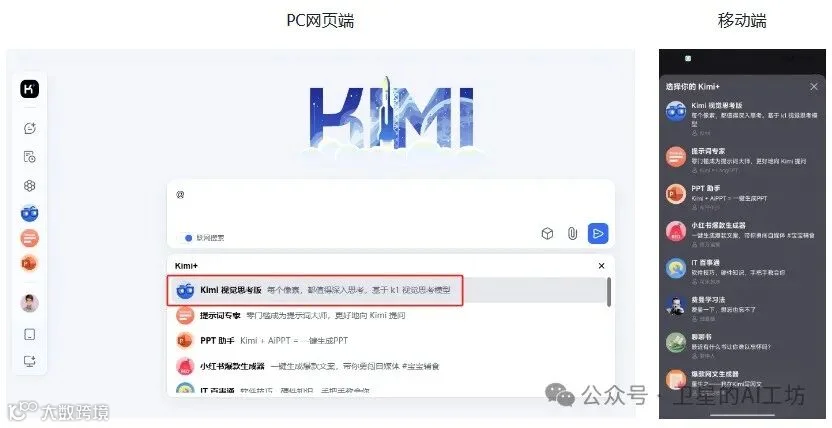 使用的时候,我们只需要在对话框中输入 @,然后选择「Kimi 视觉思考版」即可开始自己的 AI 视觉推理之旅。