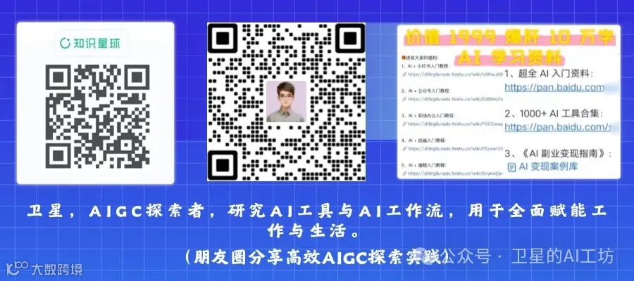大家好,我是卫星,AIGC探索者,研究AI工具与AI工作流,用于全面赋能工作与生活。
