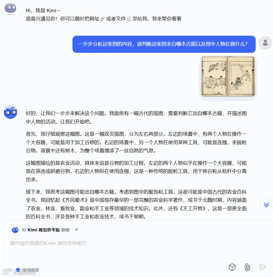 我们在这里找了一张《天工开物》中的图片,再次检验了它的这个能力。同时此外,还让Kimi 做了进一步的原理解析。