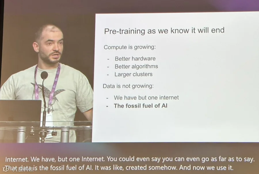 之后,Ilya Sutskever 提出“预训练即将结束,因为互联网上的数据已经被充分利用”。这确实令人深思。如果预训练因为数据耗尽而不再有效,那么我们需要寻找新的方法来训练这些庞大的模型。