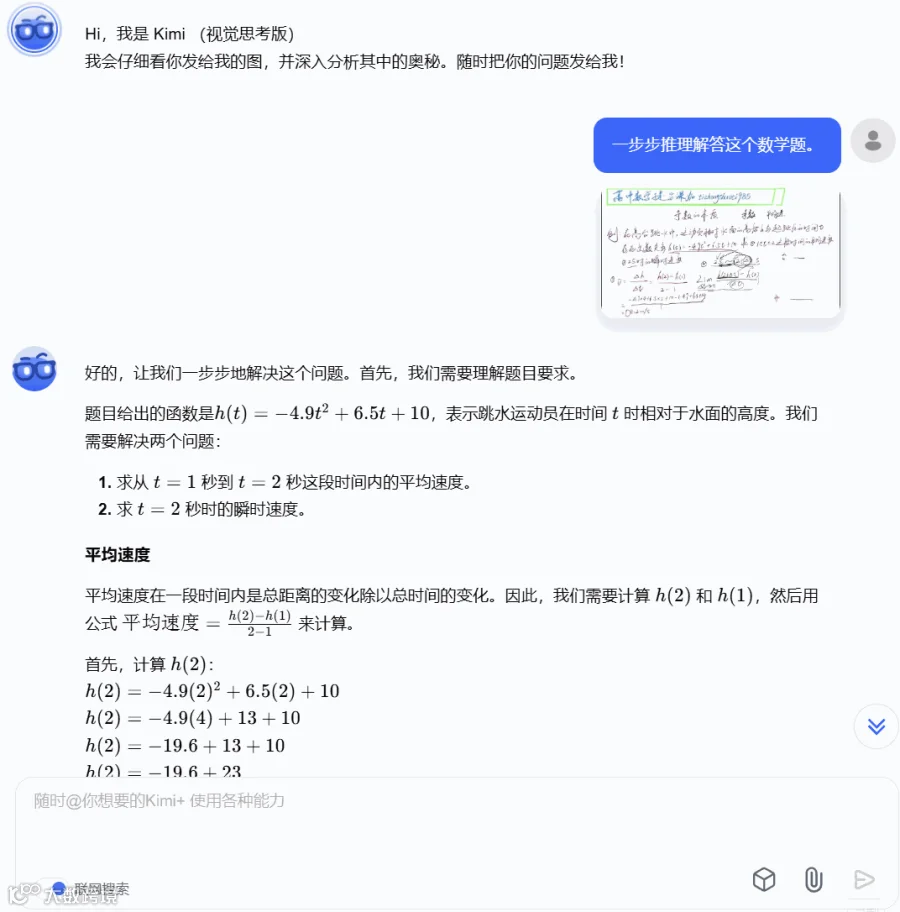 我们在网上找到了一个手写的高中数学题来检验 Kimi k1 的视觉和数学推理能力。