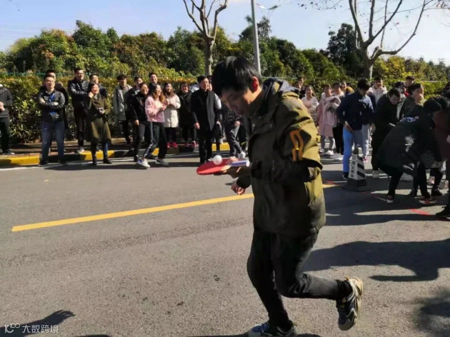 乒乓球接力赛开始了,大家在加油声中加速前进!