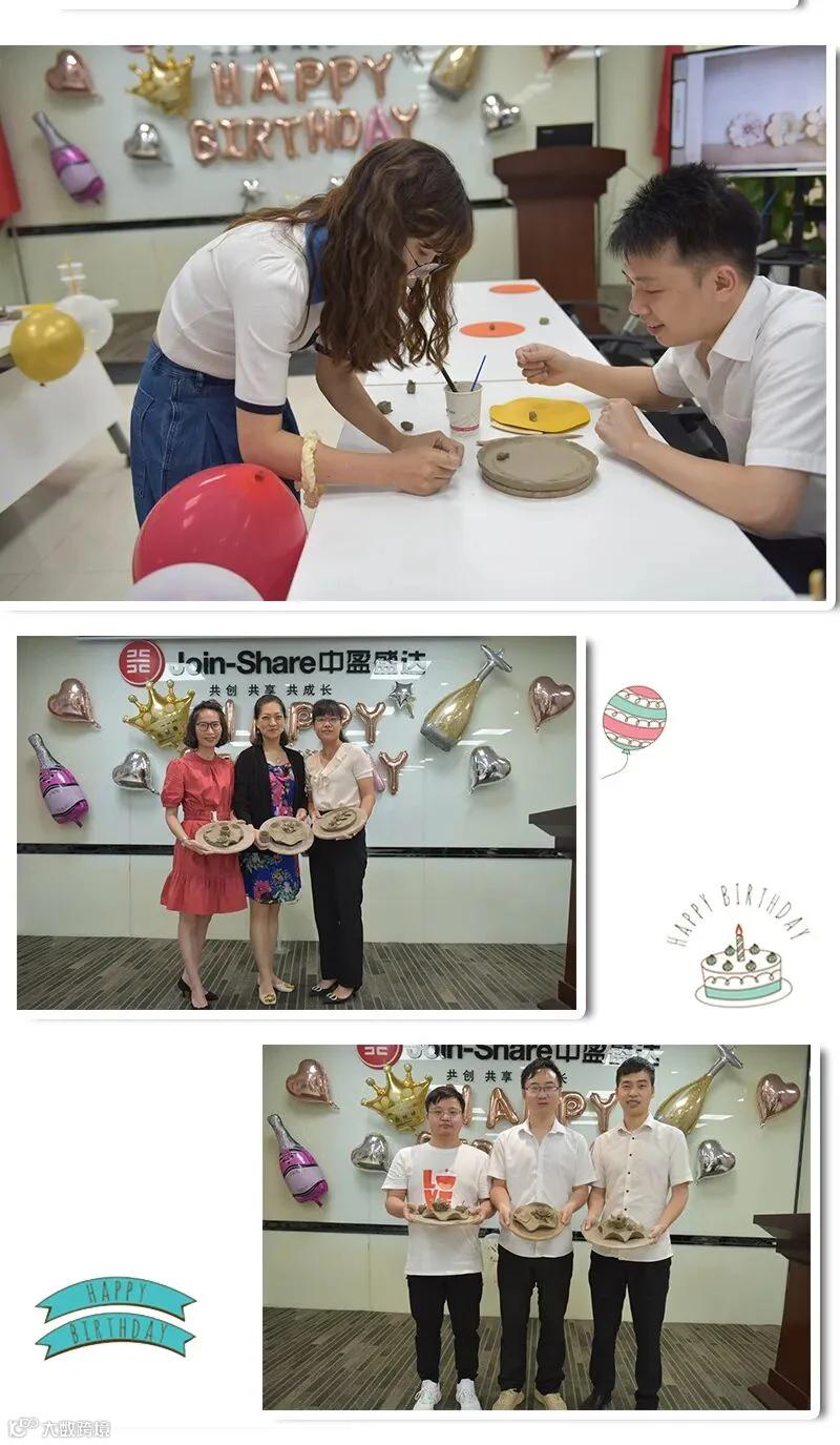 2021年7月22日,中盈盛达在中欧中心职场为第二季度生日的员工精心举办了一场别样的陶艺DIY生日会。大家齐聚一堂,用陶艺手作纪念自己的生日,赋予了这一天满满的仪式感和特殊的意义。