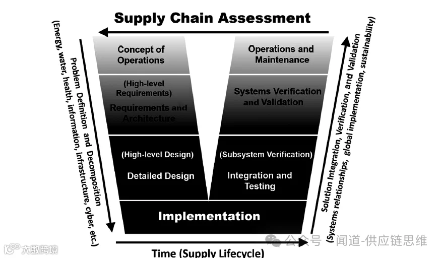 在右臂上行阶段,验证工作则与设计步骤一一对应。从最底层开始,他们先验证具体执行方案的可行性,如测试备选供应商的实际产能;然后确认各个环节的整体表现,如评估多供应商策略的效果;最后评估整个供应链是否达到预期的韧性水平。