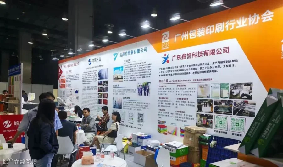 在广州包装印刷行业协会的展位前,会员企业东莞市鸿源纸业发展有限公司、广东蓝海星纸业有限公司、广东鑫誉科技有限公司和广州大洋智能科技有限公司带来的数码印刷解决方案,吸引了一波又一波专业买家驻足体验。不少人当场交换名片、预约后续洽谈。
