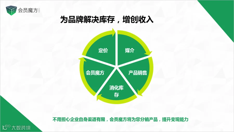 赚——消化库存—完美低价分销平台为企业创收的同时也是在消化库存:企业自身渠道有限,会员魔方将为您分销产品,提升变现能力,除会员魔方为您分销外,将为您引进更多的分销渠道,供您自由选择,大大提升产品销售。