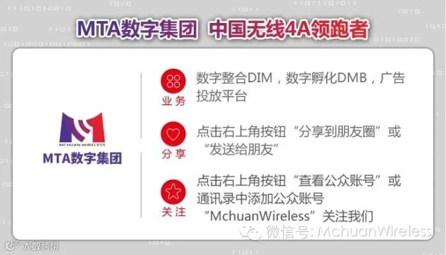 名传无线(MTA)数字集团是一家专注于移动互联网营销的广告公司,中国无线4A的领跑者,成立于2007年,旗下包括数字营销、电子商务、创新投资三大板块。