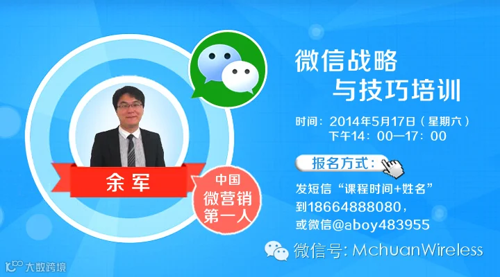 开通了公司、门店或品牌的官方微信公众账号之后,如何才能快速吸引更多潜在顾客成为粉丝关注咱的公众账号?如何与粉丝们在微信上互动交流?如何把微信上的粉丝引导到店里来消费或者直接在微信上、网站上下单购买?——这里面的方法全在余军先生的《微信吸粉、互动、转化技巧培训》。