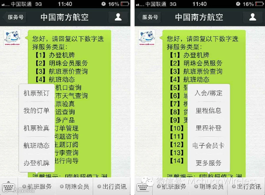 对于微信的看法,胡臣杰表示“在南航看来,微信承载着沟通的使命,而非营销。” 早在2013年1月30日,南航微信发布第一个版本,就在国内首创推出微信值机服务。随着功能的不断开发完善,机票预订、办理登机牌、航班动态查询、里程查询与兑换、出行指南、城市天气查询、机票验真等这些通过其他渠道能够享受到的服务,用户都可通过与南航微信公众平台互动来实现。