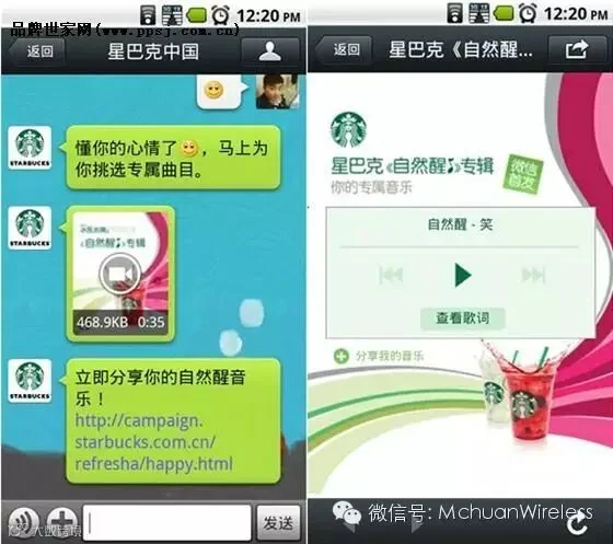 2012年夏天,星巴克在中国市场推出“冰摇沁爽”系列饮品。夏季通常是星巴克的淡季,为了配合新品上市,星巴克推出微信官方平台。受众以扫描二维码的方式,成为星巴克的微信朋友,并能够领取优惠券,而成为VIP会员。