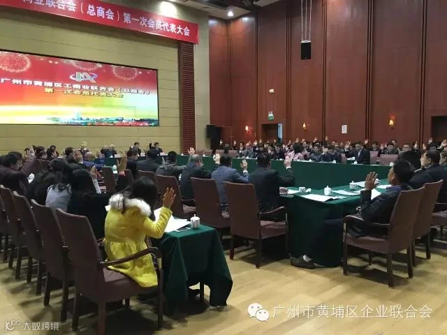 2016年1月20日14:30分广州市黄埔区工商联合会召开第一次会员代表大会,来自新黄埔区130家企业参加了会议。此次会员代表大会是两区合并后的新黄埔区成立工商联换届首次大会,大会在萝岗会议中心寰宇厅隆重举行。新黄埔区工商联合会第一届执行委员会成员名单通过举手表决选举主席、常务副主席、副主席、秘书长、常委、执委名单。