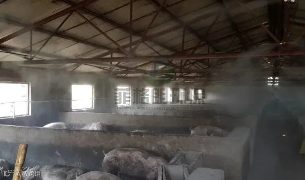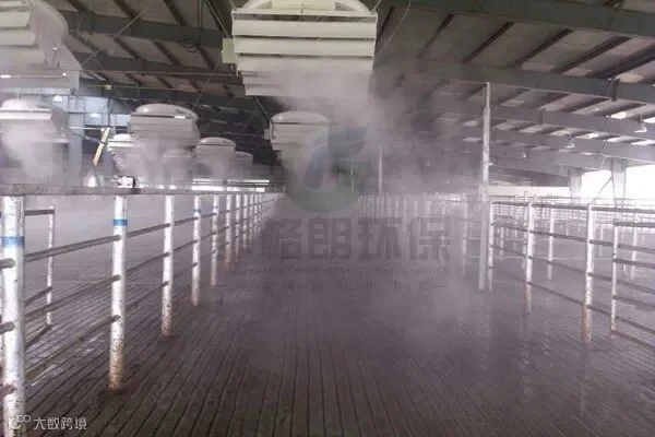 养殖场降温消毒系统 - 您是否还在为饲养的动物、家禽因为炎热情绪暴躁,不吃不喝;因为病毒传染而卧地不起?菲格朗喷雾公司精心设计制造的雾化降温系统专业为养殖场、饲养场设计,喷出的超细微雾滴中含有大量的负离子,增加空气的含氧量极大的营造和改善牲畜的生存的环境,产生更大的经济效益。