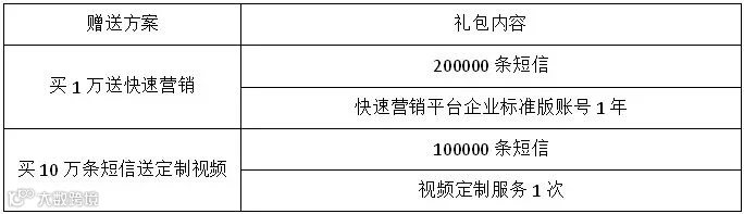 针对新老短信合作客户,成功购买10万条视频短信业务,可赠送视频定制服务。