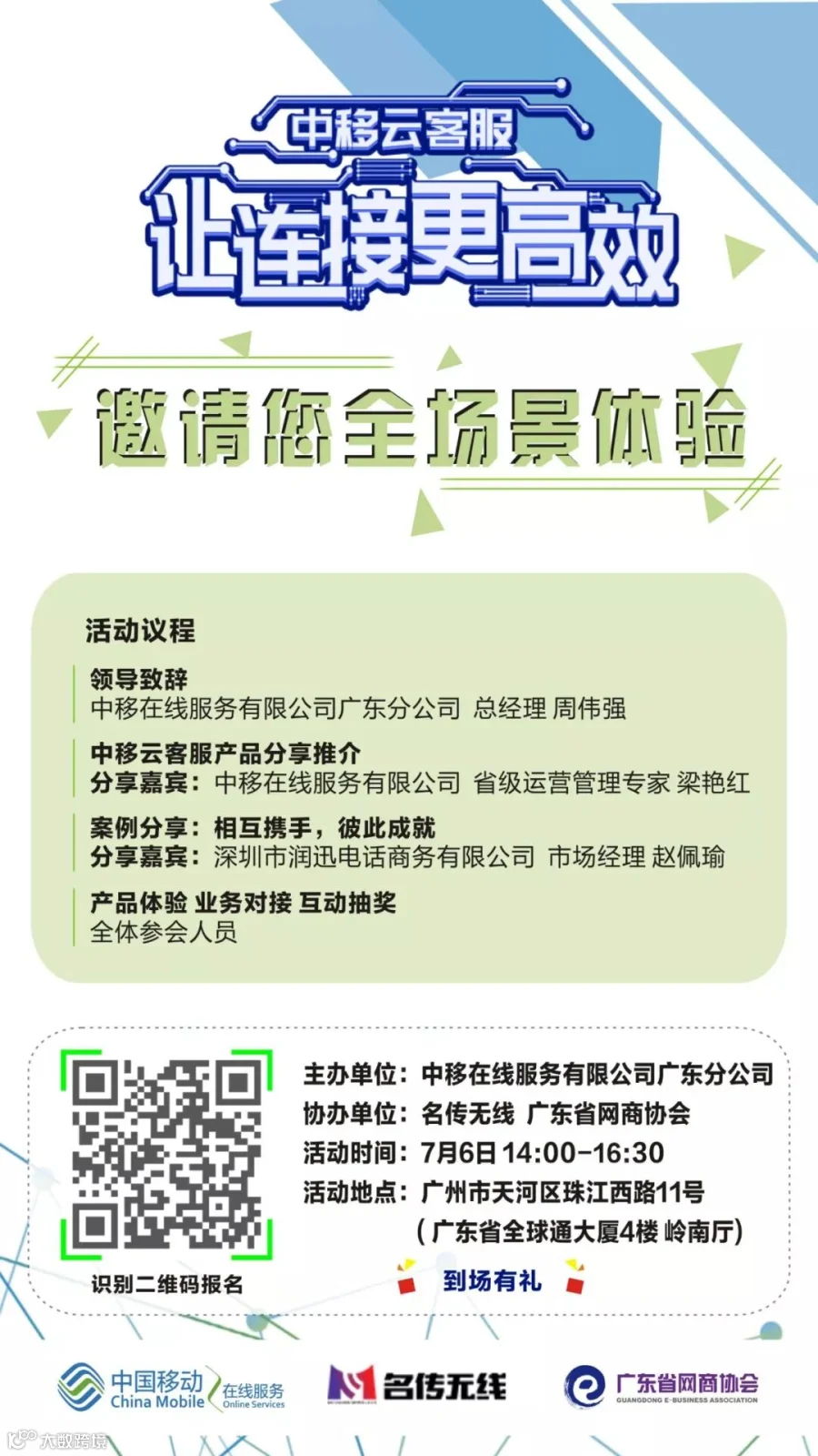 为更好让各行各业了解中移云客服平台的产品特点和产品功能,提高企业客服力量,减轻搭建成本。名传无线作为协助单位,与中移云客服平台联合广东省网商协会邀请该领域的资深专家举办一场产品推荐沙龙活动。
