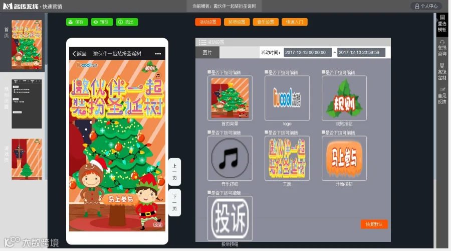 2.根据活动需求提供轻定制方案:设计图片、选择合适活动模板、生成活动。