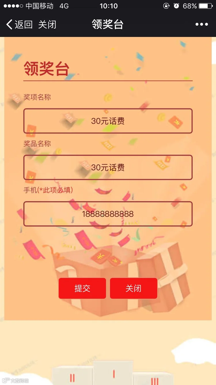 5.输入对应资料即可领取奖品(关闭视为放弃奖品)。