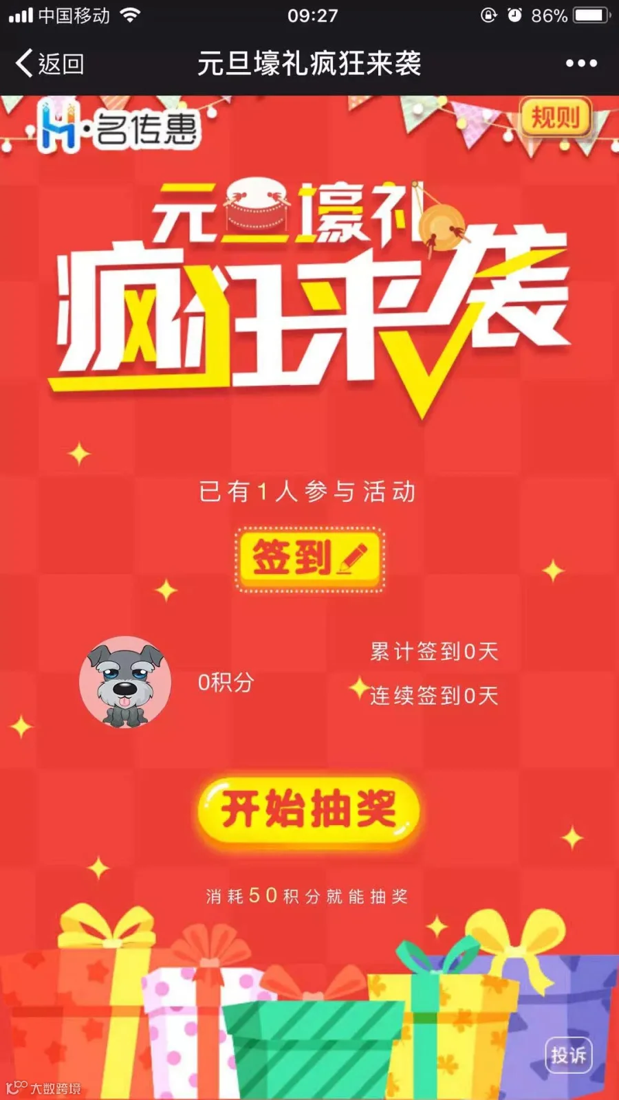 2.每天只能签到一次,每次签到可获得10积分,每抽奖一次会消耗50积分,活动奖品随机发放。本活动结束后未使用的积分将会清零。