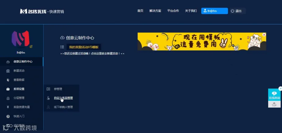 体验入口:登录平台(网址 http://yun.mchuan.com/)→ 选择“快速营销”
